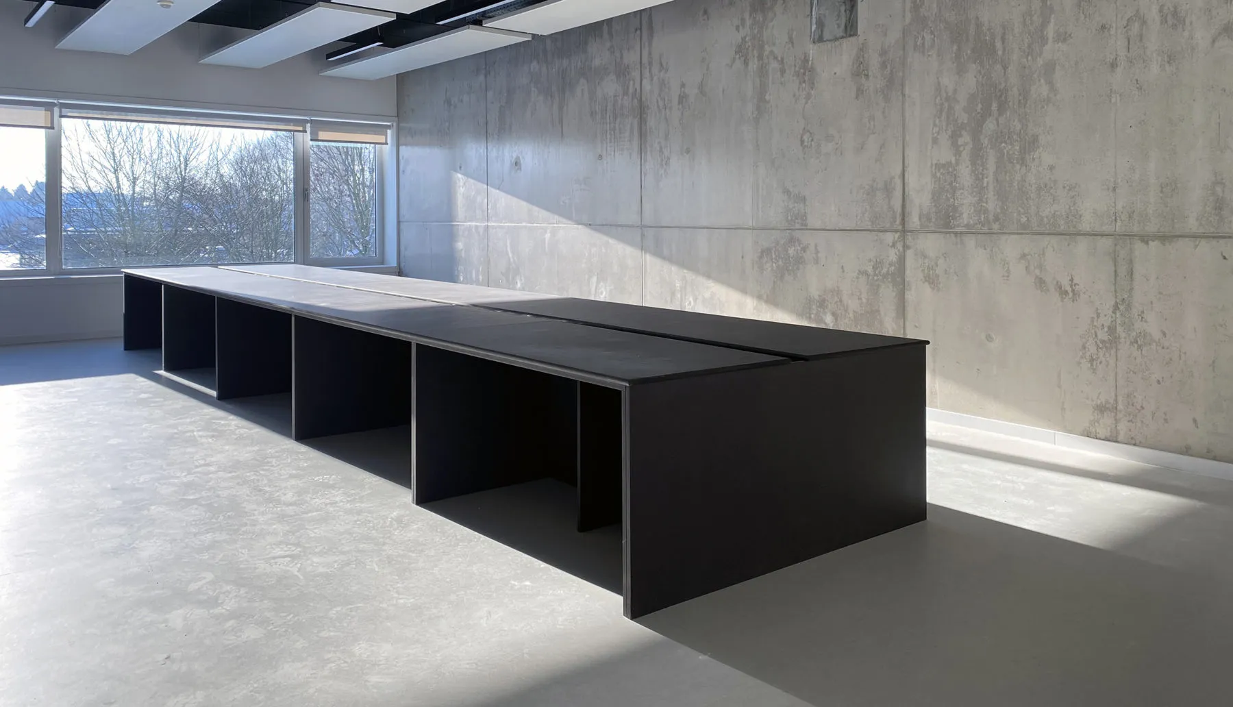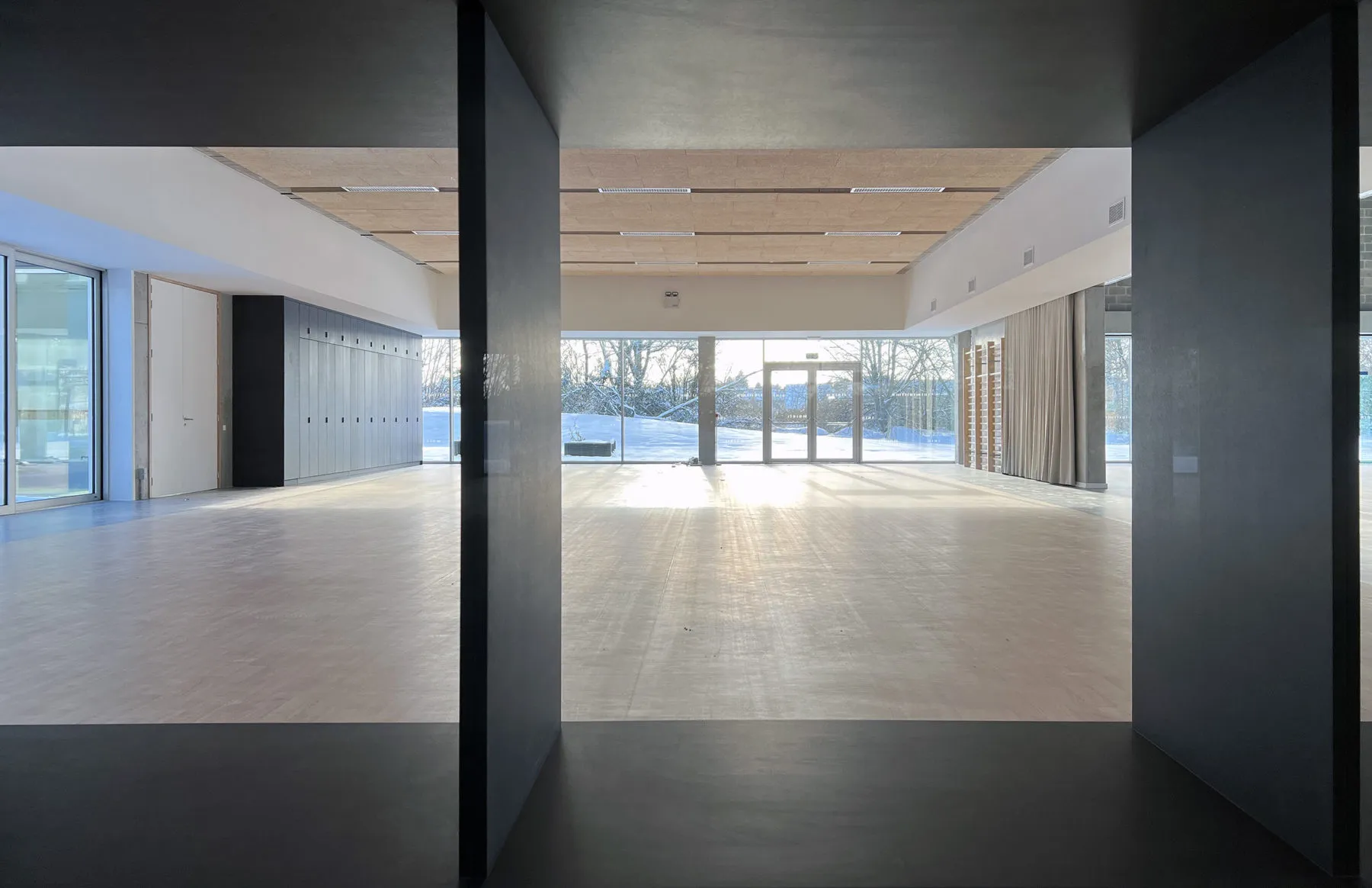 Autour de cette cour intérieure, les fonctions communes se déploient dans un dialogue spatial subtil. La transparence des cloisons, les percées visuelles et les jeux de double hauteur orchestrent une porosité maîtrisée, offrant des vues croisées entre les espaces. La circulation fluide, ponctuée de lieux de pause et d’échange, favorise les rencontres sans jamais troubler les équilibres d’usage.