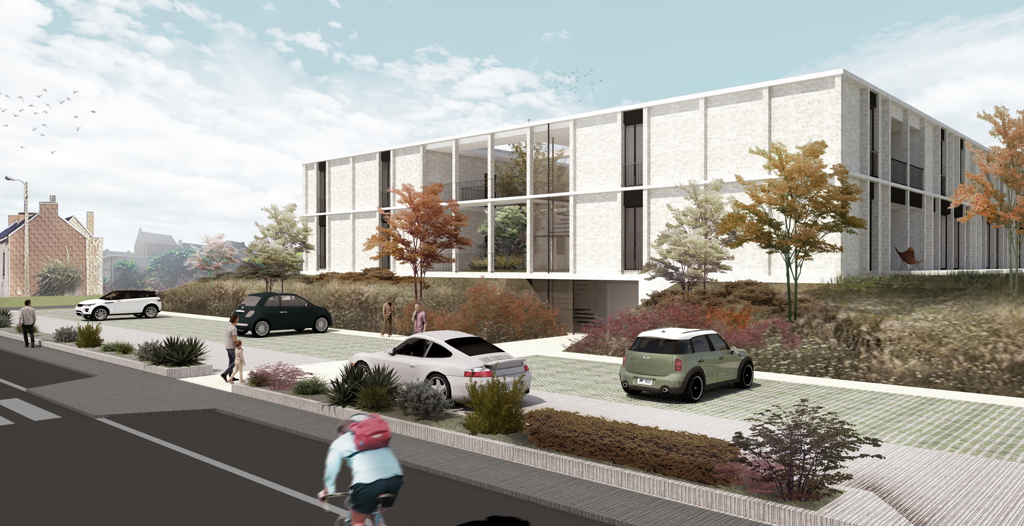 Lors de notre première rencontre avec le maître d’ouvrage, celui-ci envisageait une nouvelle étude de cinq petites maisons mitoyennes situées en front de rue, pour lesquelles un permis avait déjà été octroyé. Toutefois, au regard des caractéristiques du site — sa superficie, son potentiel paysager et son contexte urbain — cette intervention nous est apparue comme sous-dimensionnée et peu en adéquation avec les enjeux du lieu.